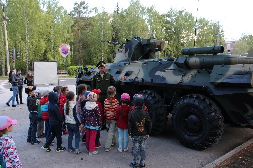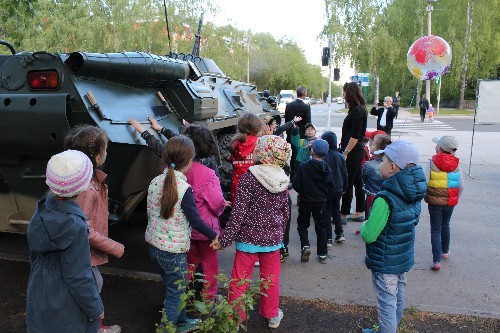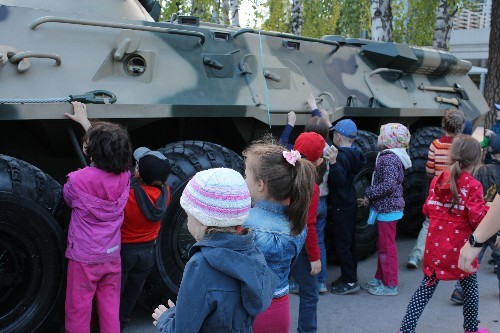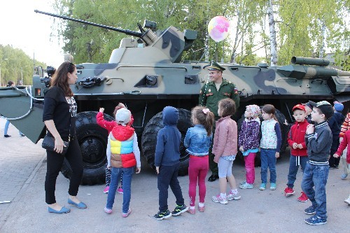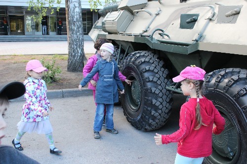 Утром 2 июня дети старшей и подготовительной групп отправились на выставку военной техники, что проходила у Дома ученых.