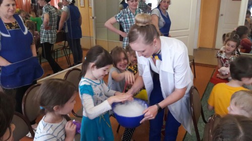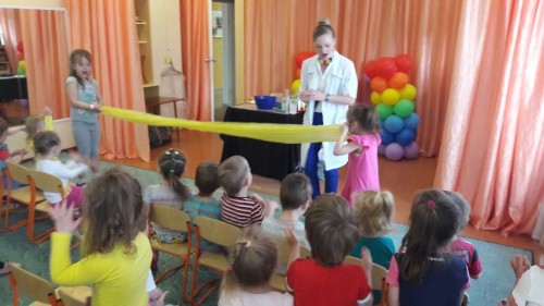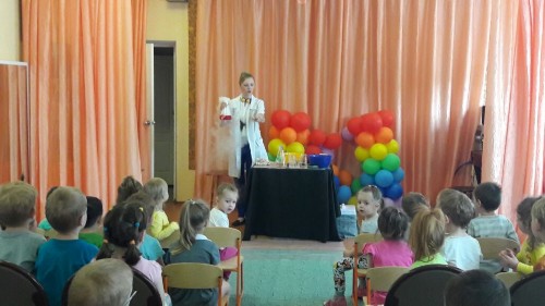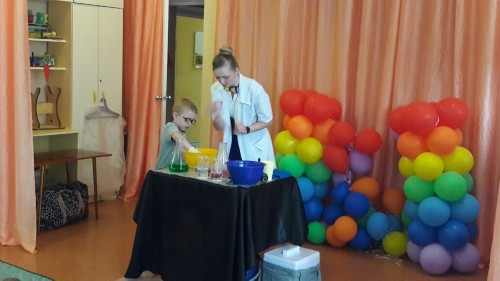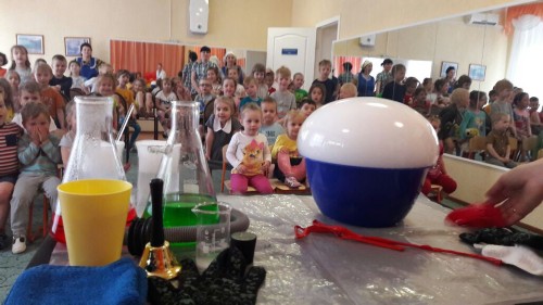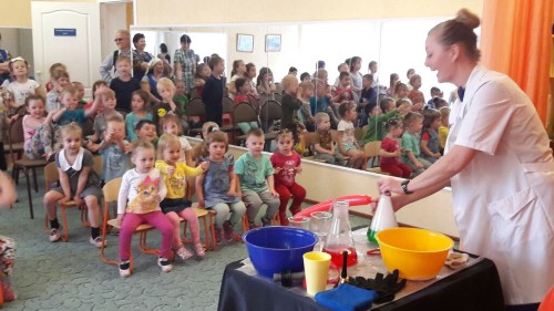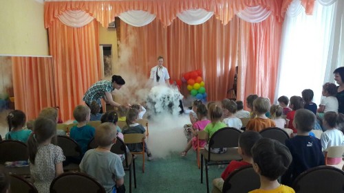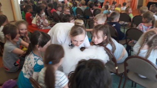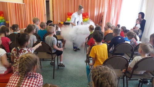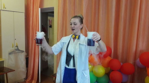 Профессор Шипучкина (Валентина Кончакова) привезла для наших ребят обширную программу научных опытов!