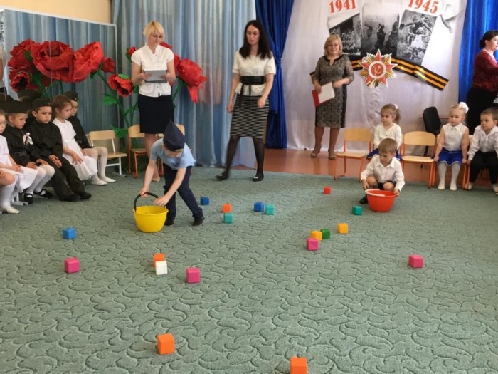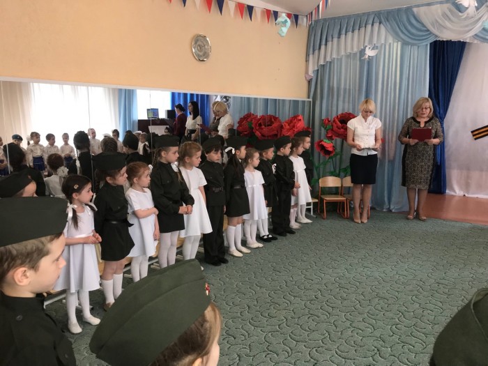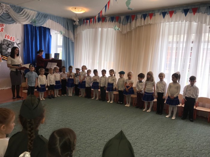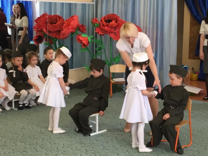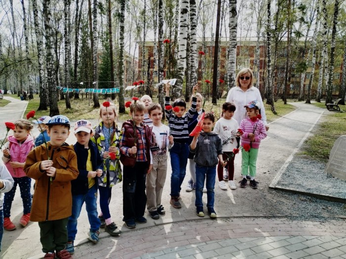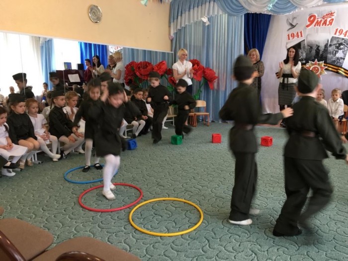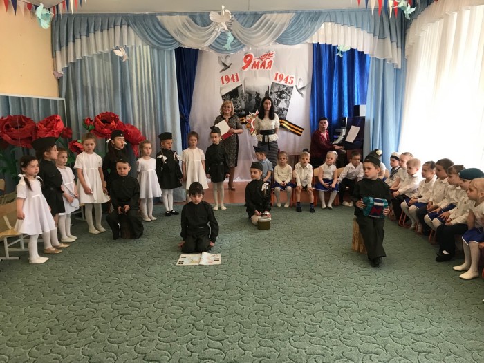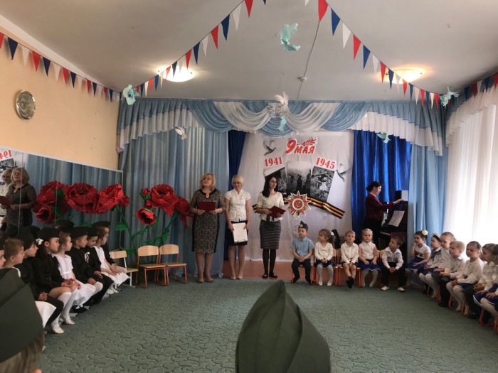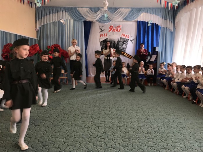 Накануне 9 мая в детском саду прошли праздник в средней, старшей и подготовительной группах, посвященные дню Великой Победы. Праздник был подготовлен с целью формирования у детей знаний о Великой Отечественной войне, обогащения знаний дошкольников об истории своей страны, воспитания чувства гордости за героизм нашего народа, воспитания устойчивого интереса к армии. В программу мероприятия вошли песни о празднике победы, о мире, о солдатах, танцы, стихи о войне, о бессмертном подвиге защитников Отечества. Традиционно завершился праздник выходом групп к монументу «Вальс Победы» для возложения цветов и почтения памяти погибших минутой молчания.