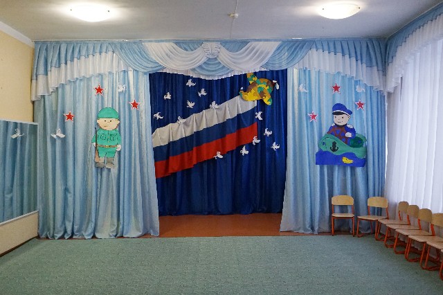 Оформление зала к празднованию Дня защитника |