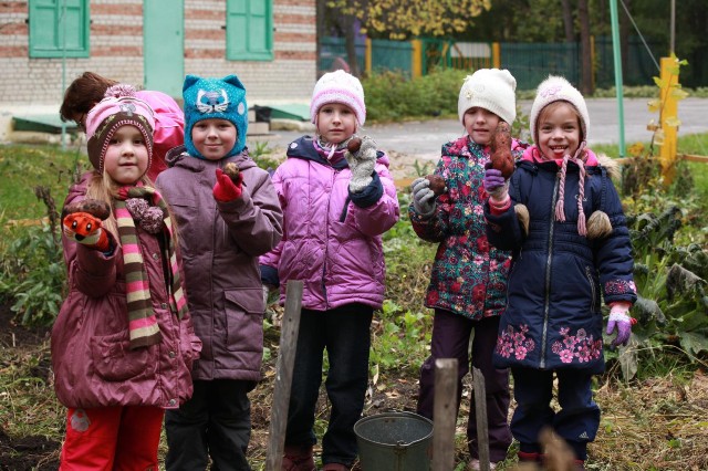 Подготовишки собрали с огорода небольшой урожай картошки | |