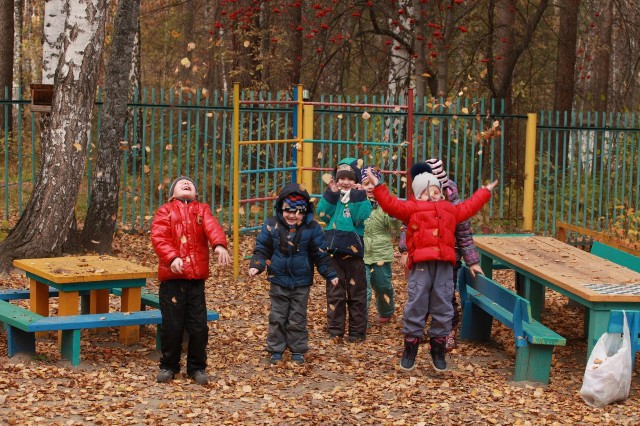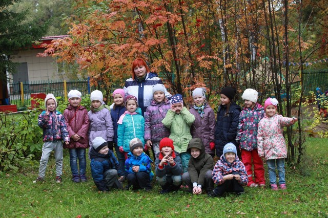 Подготовительная группа на прогулке осенью | |