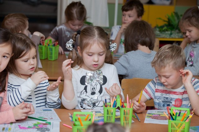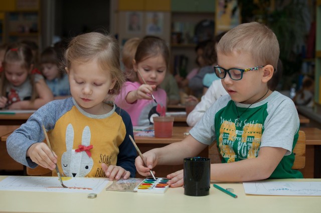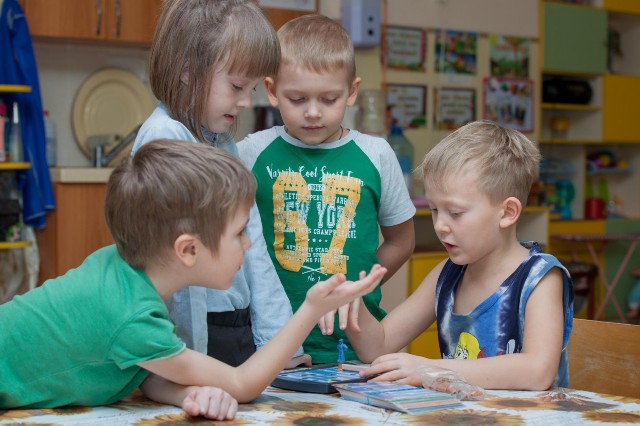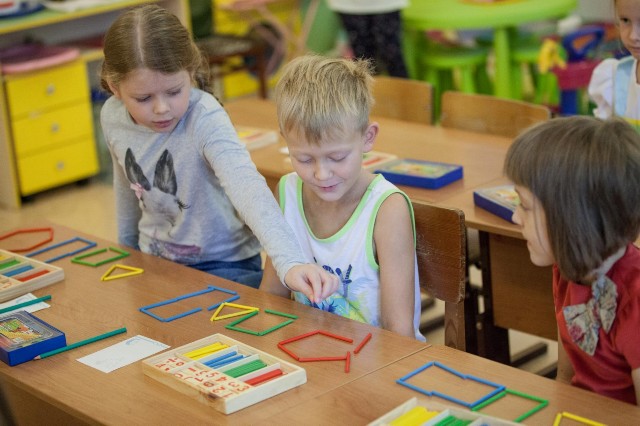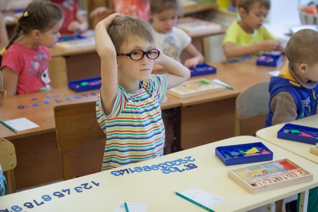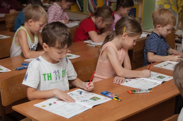 | Еще не школьники, но уже очень серьезные на занятиях дети |